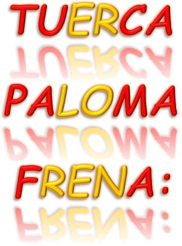 TPF, ...en otra de las penúltimas patentes en proceso Internacional con nosotros, ....ejem !. ...Le damos La Solución: TUERCA PALOMA FRENA, ...ejem !; ...es decir, la típica tuerca de Paloma, Combinada con la tipica tuerca Frenante, ...ejem !. ...Solución que Permite: ...Ahorros de tiempos sumatorios, ...ejem !, ...con Mejoras en grados de Efectividad y Durabilidad, ...ejem !, ...si es que hemos de emplear, ambos tipos de tuercas, ...ejem !, ...ya que SOLO aquí, ...ejem !; ...Usted Combina la Rapidez de la típica tuerca de Paloma ó Palomilla, ...ejem !, ...con la Eficiencia y Durabilidad, que da la típica tuerca Freno ó Frenante; ...ejem !, ...Ejem !; ...EJEM !. ...Todo con lo cual, ...al solo